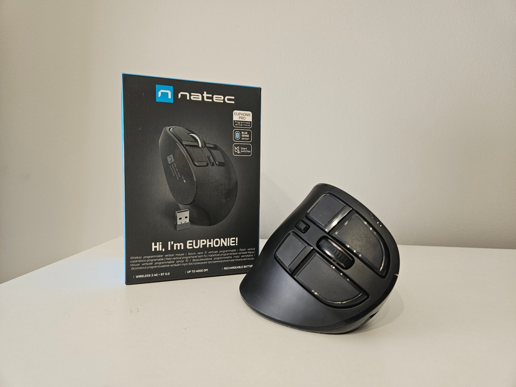 Natec Euphonie Pro to przemyślana kontynuacja udanego modelu, która łączy sprawdzoną ergonomię z nowoczesnymi rozwiązaniami. Wertykalna konstrukcja odciąża nadgarstek, wbudowany ekran OLED umożliwia pełną konfigurację bez oprogramowania, a długa żywotność baterii i dwa tryby łączności zwiększają uniwersalność urządzenia. To mysz przede wszystkim do pracy — wygodna, funkcjonalna i dobrze dopasowana do codziennych wyzwań biurowych.