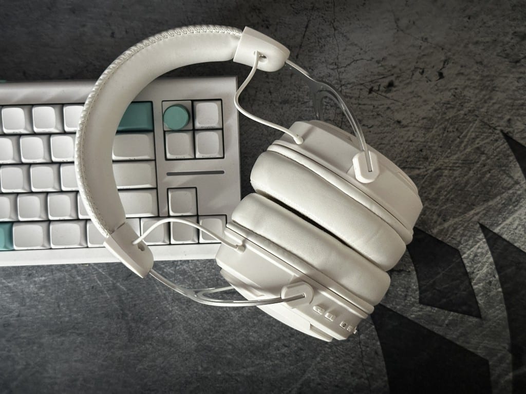 Słuchawki są wykonane całkiem nieźle jak na swoją wycenę, która wnosi 219 złotych. Headset został też zachowany w jednolitej kolorystyce, bo w moim przypadku biała wersja ma praktycznie wszystkie elementy w tym kolorze za wyjątkiem jedynie srebrnego elementu łączącego muszle z pałąkiem.