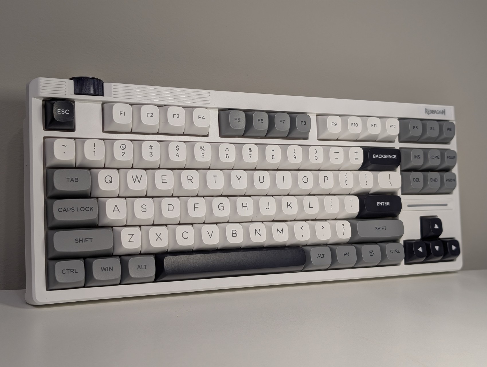 Obecność pokrętła w klawiaturze stała się dla mnie czymś na tyle naturalnym, że trudno wyobrazić sobie powrót do konstrukcji pozbawionej tego elementu. Redragon OTIM PRO również został w nie wyposażony, jednak rozwiązano to w inny sposób. Pokrętło umieszczono na tylnej krawędzi obudowy, a nie na górnym panelu, jak ma to miejsce w większości klawiatur.