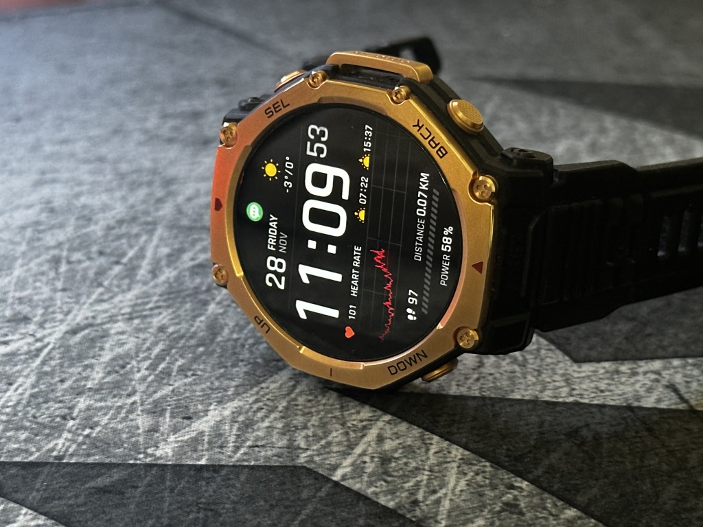 Amazfit T-Rex 3 Pro to zegarek, który od pierwszego dnia sprawia wrażenie sprzętu stworzonego „do działania”. Jest lekki jak na swoje gabaryty, dobrze leży na nadgarstku i mimo militarnego charakteru nie przeszkadza nawet podczas snu. Wyświetlacz AMOLED oferuje kapitalną widoczność w pełnym słońcu dzięki 3000 nitów jasności, a sama responsywność interfejsu stoi na bardzo wysokim poziomie – nie miałem sytuacji, w której system by przyciął, zgubił animację czy potrzebował chwili na reakcję.