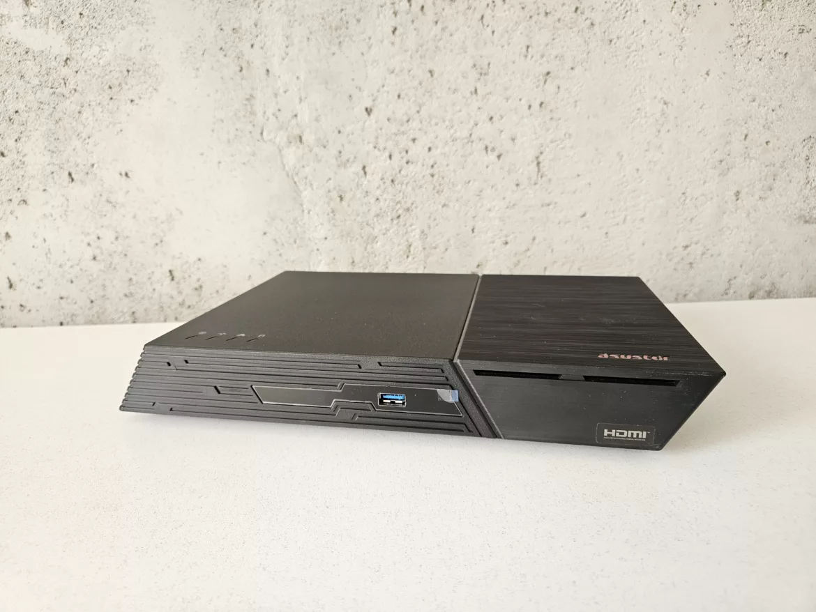 Od frontu umieszczone zostało jedno złącze USB 3.2 Gen 2 oraz otwór wentylacyjny do dysków. Na górze znajdziemy sześć diod informujących o statusie urządzenia. Natomiast z tyłu znajduje się spora ilość różnorodnych portów. Zaczynając od lewej – port S/PDIF, dwa USB 2.0, dwa porty Ethernet (obsługujące dwie karty sieciowe o szybkości 2.5 Gb/s każda), HDMI oraz USB 3.2 Gen 2. Oprócz tego oczywiście wejście do zasilacza oraz przycisk reset.